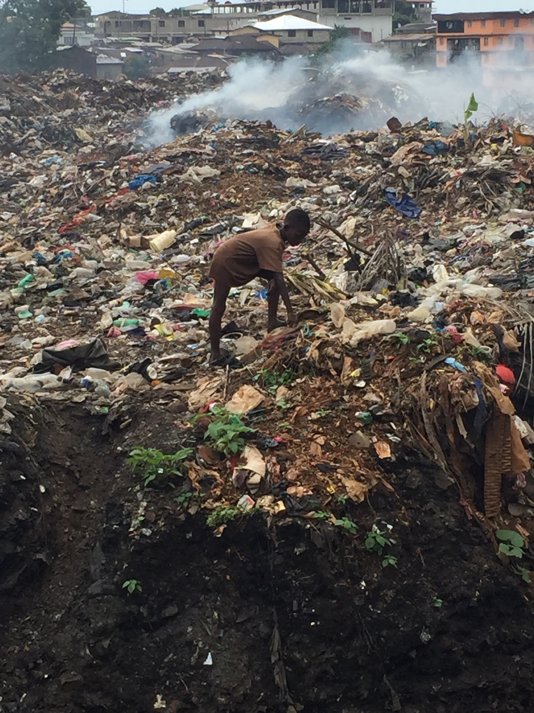 This is their home and they sustain themselves from one day to the next by collecting tin cans. They get paid 20p if they can find 1kg of tin cans. Amassing the quantities they need to get their 20p takes some time: it’s pretty busy here with thousands of families making a living off this rubbish dump, one of two in Freetown. They live amongst the pigs and the fires, the broken glass and rotting household waste.
